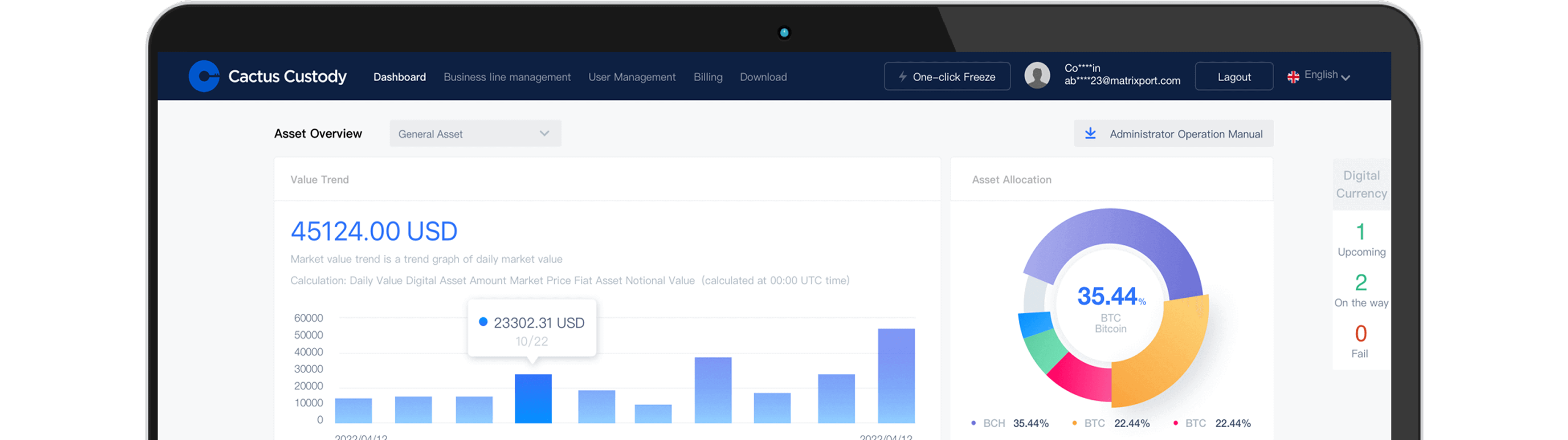 Supports unified management of multi-account, multi-entity crypto assets and fiat currencies, covering mainstream digital assets and 60+ public chains. Provides permission grading, multi-signature management, automatic auditing, and traceable operation processes, meeting institutional-grade compliance requirements.